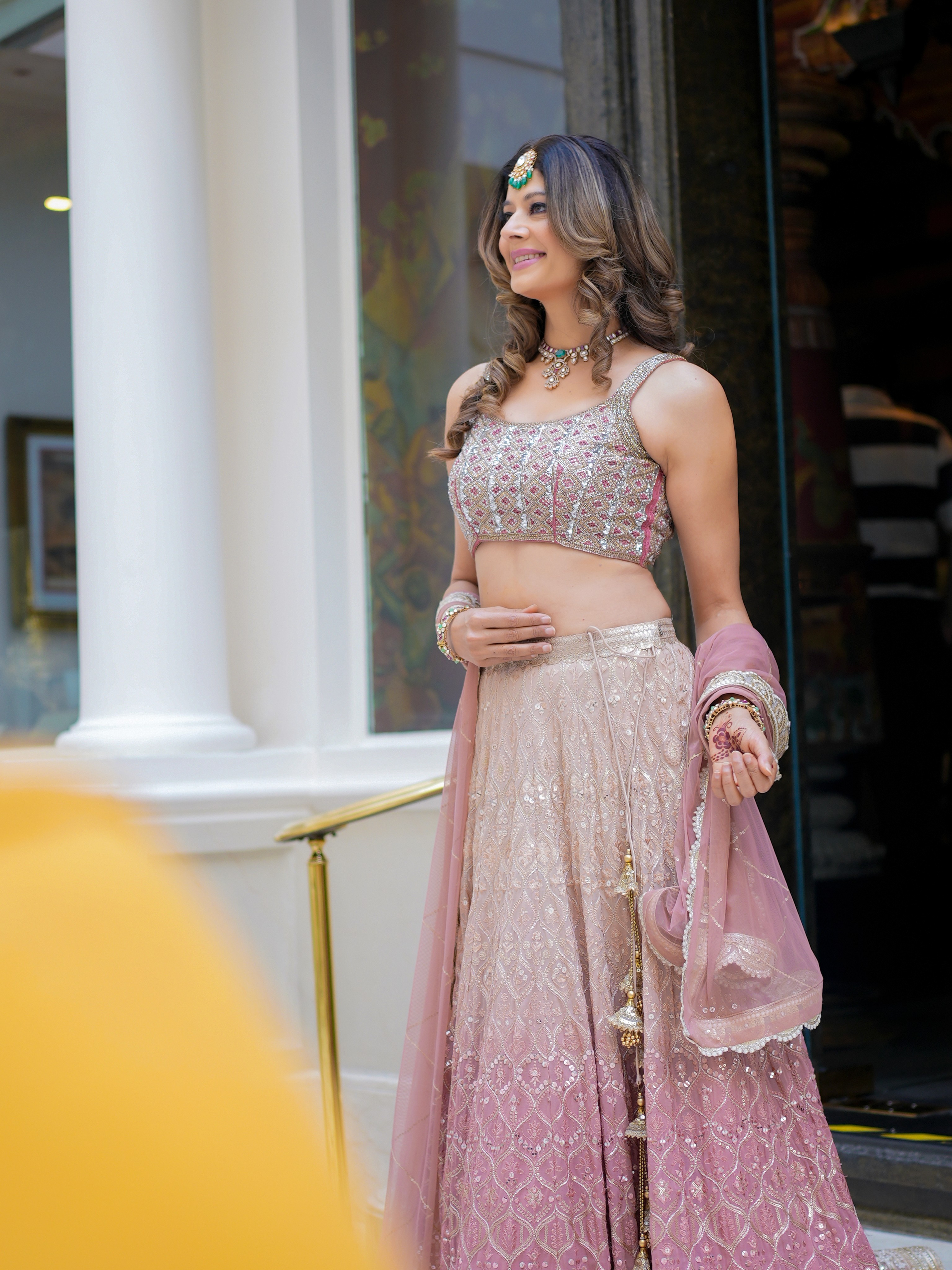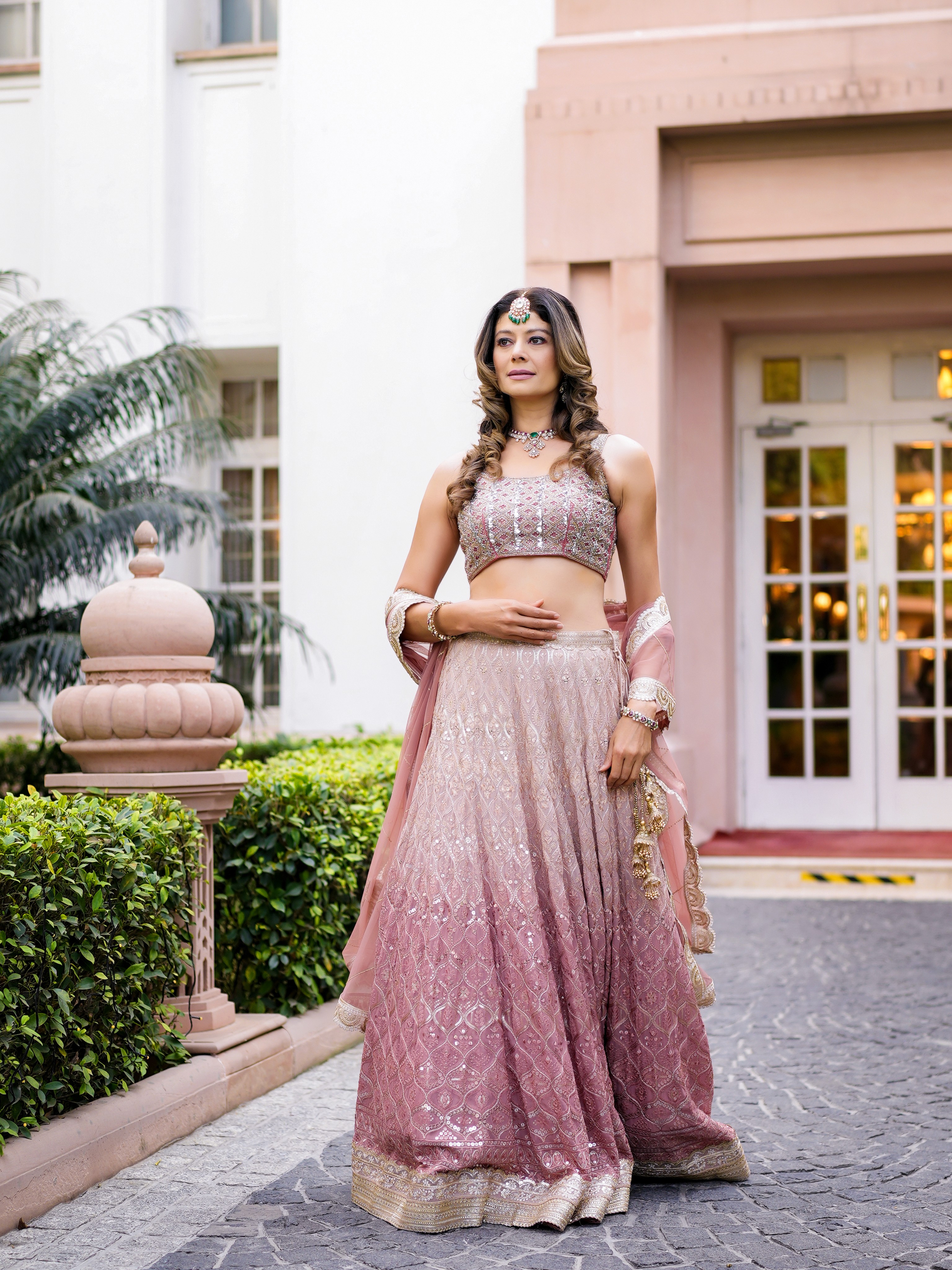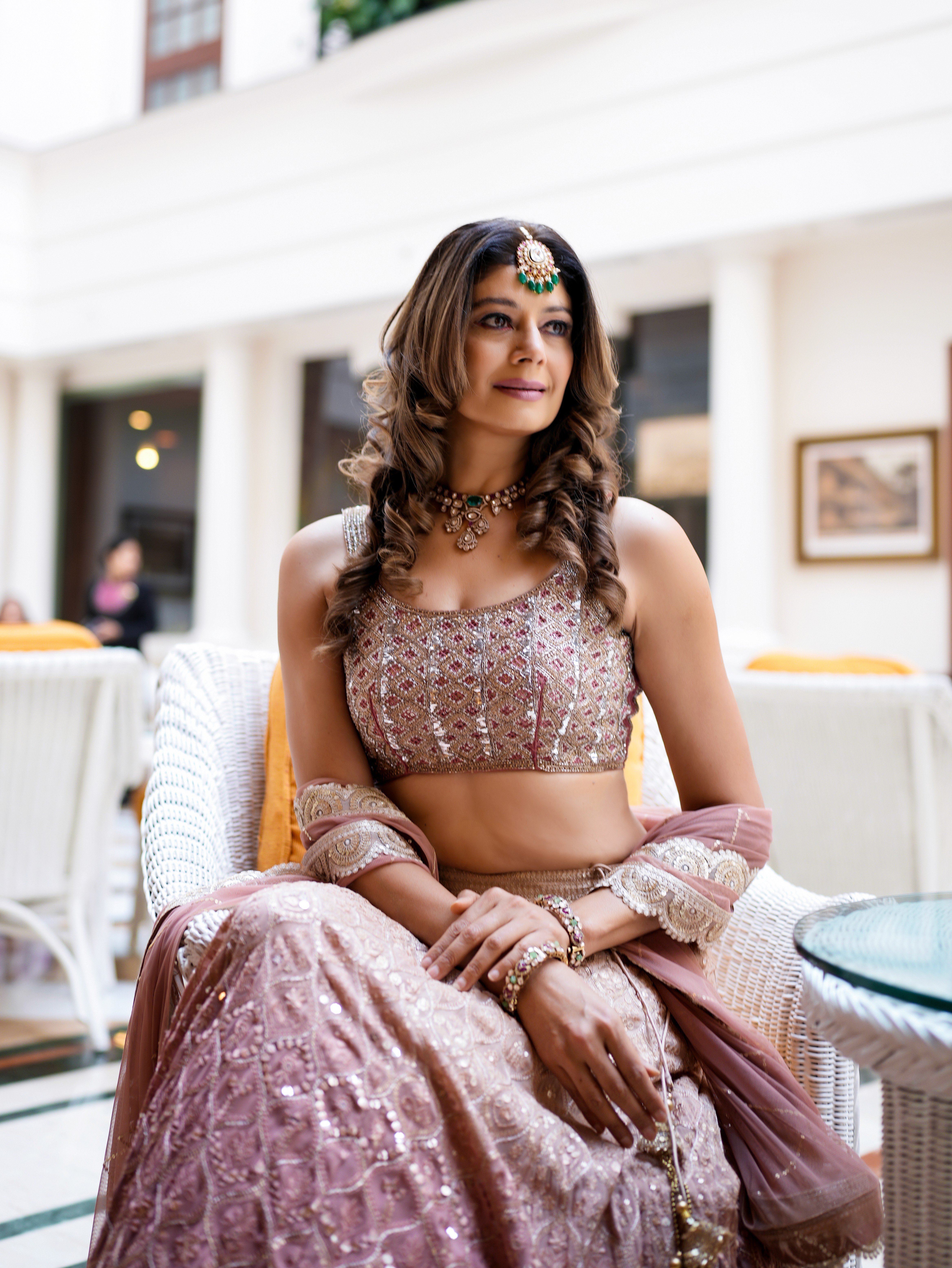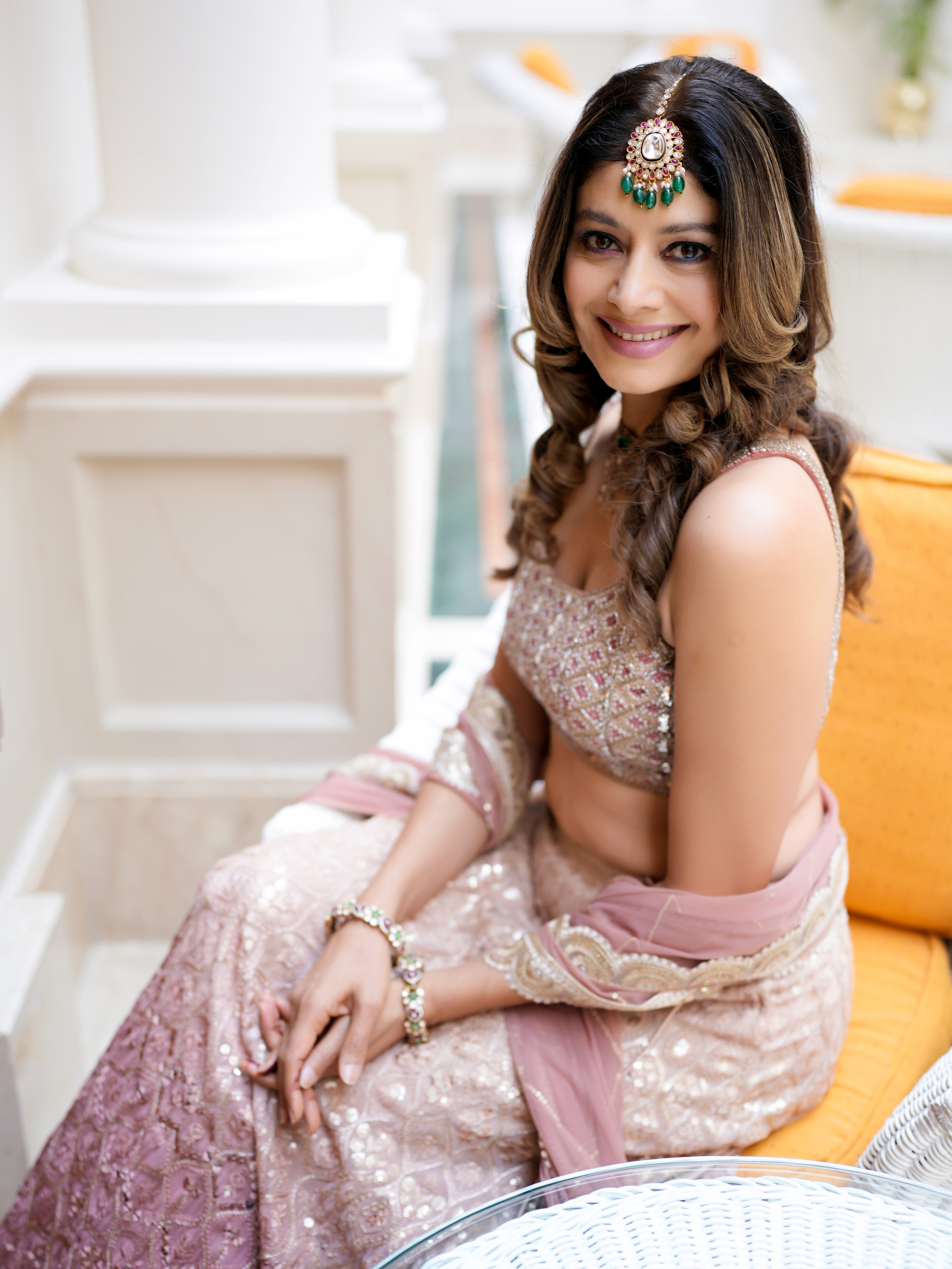 Pooja Batra stunning in Custom Bhumiks Grover for a family wedding.